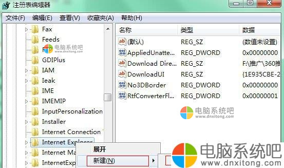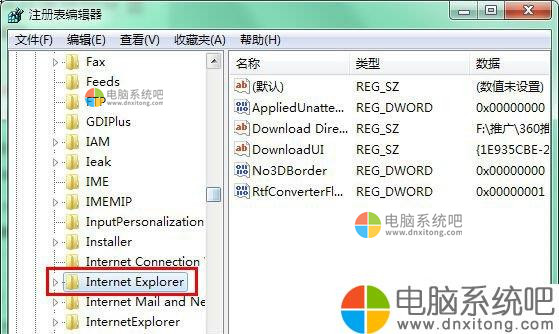 2、然后在注册表中定位到以下项(可以一个一个展开):HKEY_CURRENT_USER\Software\Microsoft\Internet Explorer。