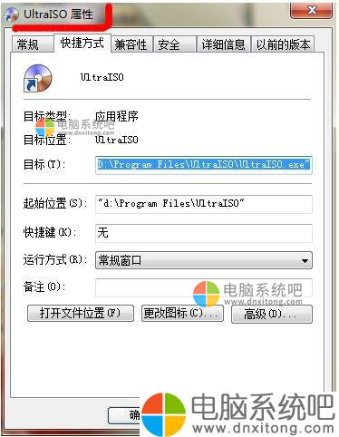 2、其实这个也是可以解决的问题,首先找到你的软件,例如以软件软碟通为例,首先打开的他属性栏,鼠标右键点击软件打开之后找到最下面的属性,点击打开。