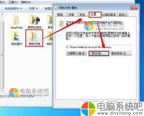 2、右键“我的文档”-“属性”,打开“位置”,点击“移动”。