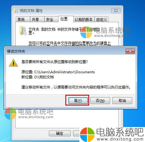 4、在弹出的窗口中选择“是”,开始移动所有文件到D盘。