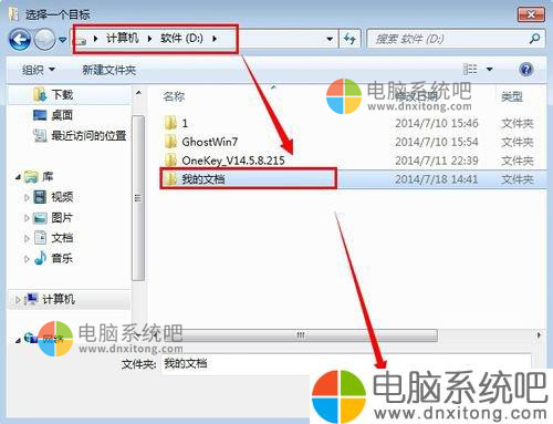 3、选择D盘,在D盘下新建文件夹“我的文档”,然后选中,点击“选择文件夹”。