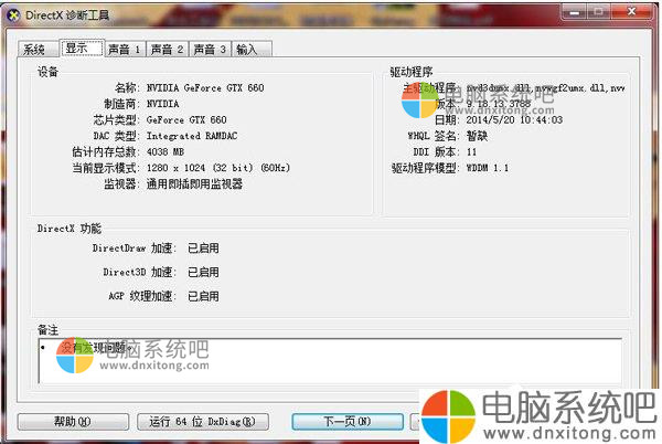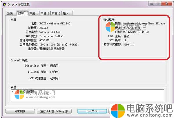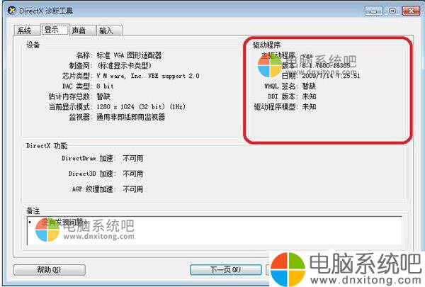 最后是驱动程序模型,这里也是,只要有信息就是正常,显示未知就是显卡驱动有问题。