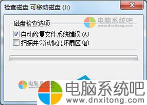 4.右击“可移动磁盘”,从弹出的菜单中选择“属性”。并在打开的窗口中,切换至“工具”选项卡,点击“查错 开始检测”按钮。