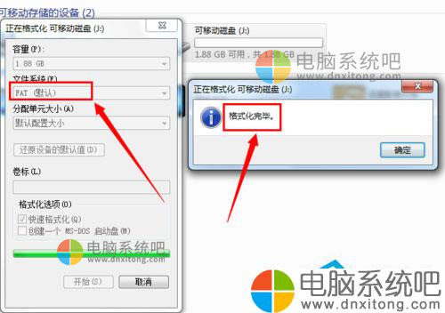 4.当出现以上错误提示时,由于大面板坏道的产生,导致U盘可用容量减少,因此只能使用“Fat”文件电脑系统来格式化U盘。