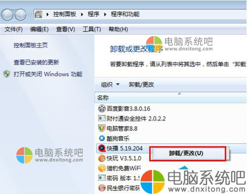 2、找到当前电脑系统安装的新版本的快播5,当然您也可以直接在 开始菜单—所有程序—找到快播的卸载快播也可以。