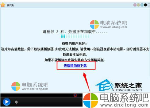 4、除此之外,有的网站如果提示快播不能点播的时候。也一般有一个快播精简版下载地址,直接点击下载安装即可。