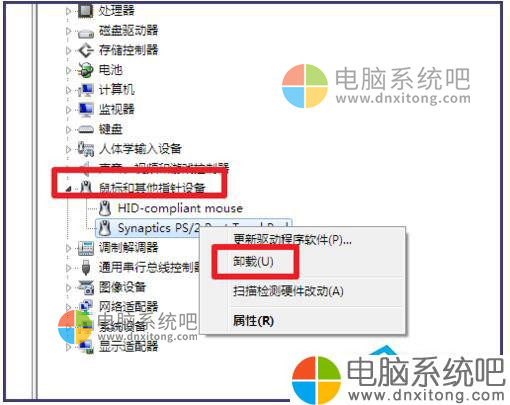 3、找到【鼠标和其他指针设备】,将后面一个卸载,即可。