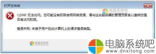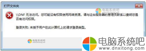 “登陆失败:未授予用户在计算机上的请求登陆类型”。