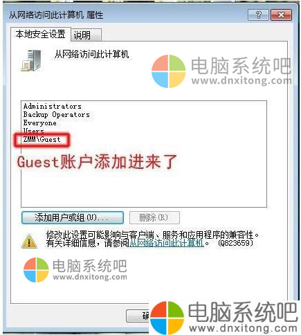 6、这问题在于我们没有将Guest用户添加到计算机允许访问的列表中。