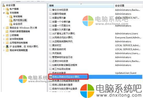 10、我们返回“用户权限分配”界面选择“拒绝从网络访问这台计算机”。