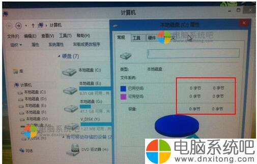 3、重装电脑系统的时候问题又来了,读不出C盘,那么只有使用PE电脑系统工具了,很多朋友不明白PE电脑系统的可以直接百度查询就可以了。没有PE电脑系统碟的,可以自己用U盘制作一个,这里就不说怎么制作PE电脑系统了,制作方法百度一搜一大把!利用PE电脑系统碟进入电脑系统,右键点击C盘,选择属性,打开C盘属性,发现C盘磁盘容量既然为0!这台机问题的本质就在这里,为什么启动不了电脑系统的问题也在这里。如果不想格式化磁盘,就用磁盘恢复工具恢复C盘试试。