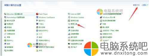 3、进入控制面板,选择左上角的查看放松为小图标,然后下方列表中找到管理工具打开。