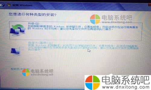 2.选择windows安装方式。如果需要格式化c盘,选择自定义安装,这里介绍下自定义安装。