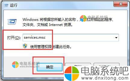 3、开启服务:点击开始 – 运行。 然后输入services.msc 按下回车!!
