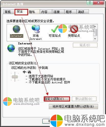1、有的网页中嵌入了javascript!通过编程手段屏蔽了复制。我们只要点击IE右上角的“工具”→“Internet选项”菜单,进入“安全”标签页,选择“自定义级别”!