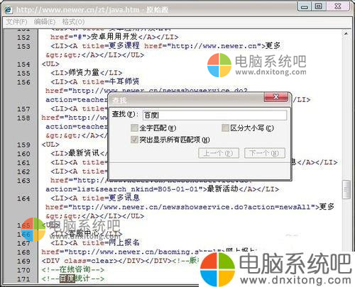 2、点击源文件之后我们就能看到这个页面的源代码了。我们可以往下拖动找到你需要的不能复制的内容。我们也可以使用快捷键Ctrl+F来查找!!