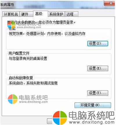 2、在随即弹出的电脑系统属性对话框内,点击环境变量。