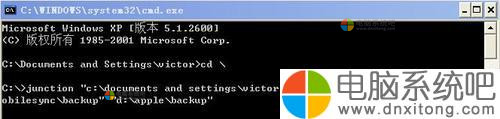junction “C:\Documents and Settings\(你的用户账户名)\Application Data\Apple\ Computer\MobileSync\Backup” “D:\Apple\Backup”