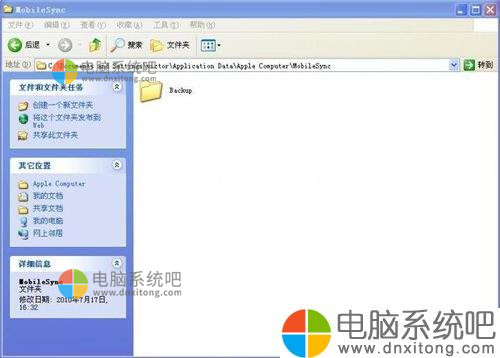 iTunes备份文件夹的默认位置(注意,是隐藏文件,需要点“工具”(在Vista/w7下按一下Alt键就会出现菜单栏)→“文件夹选项”→点“显示隐藏的文件、文件夹和驱动器”,然后点应用就能看到了,如下图,)