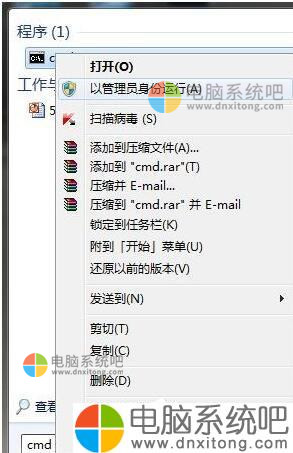 4、之后,点“开始”,输入“cmd”,然后右键点击cmd,选“以管理员身份运行”。