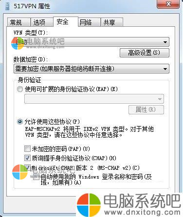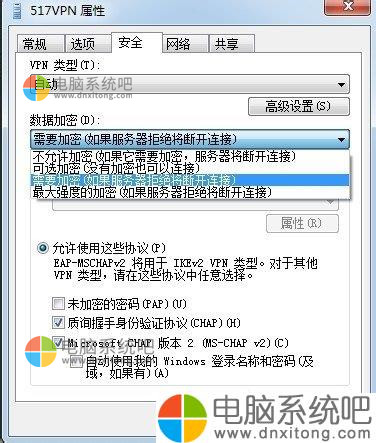 6、出现的页面,选择安全,看看类型和数据加密是默认选择的什么设置。