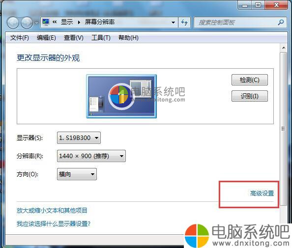 2、在弹出的这个“屏幕分辨率”页面中,点击右下角的高级设置,再在弹出的新页面中选择“监视器”。