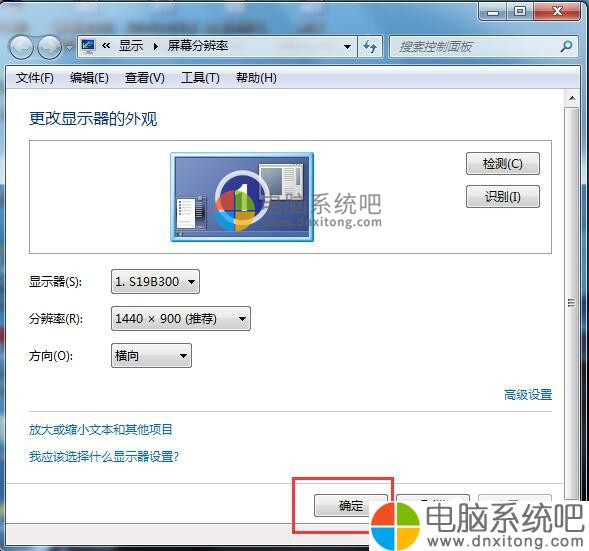 4、回到“屏幕分辨率”页面中,同样点击确定。